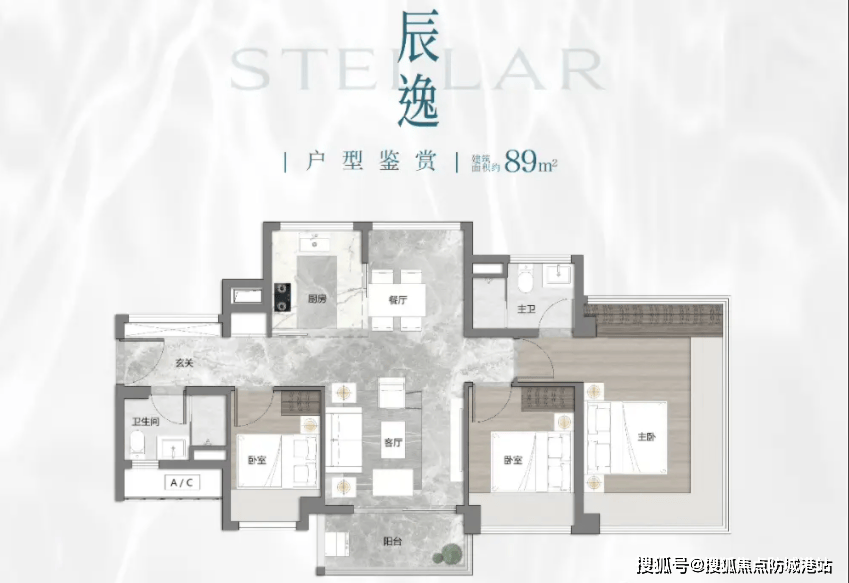 89㎡三房两卫户型被誉为“全能王者”,它在面积和功能之间找到了完美的平衡点。该户型采用了先进的LDK一体化设计,客厅、餐厅、厨房融为一体,形成了一个巨大的家庭核心区。阳台进深超过1.8米,这在同面积段产品中极为罕见,不仅可以作为洗衣房、储物间,甚至可以改造成一个小型的阳光房或茶室。功能分区清晰,动静分离,卧室区域安静私密,不受客厅活动的干扰。主卧套房设计,带有独立卫浴和衣帽间,提升了主人的居住尊严感。三个房间大小适宜,布局方正,几乎没有浪费面积。对于追求高品质生活的改善型客户,这一户型极具吸引力。